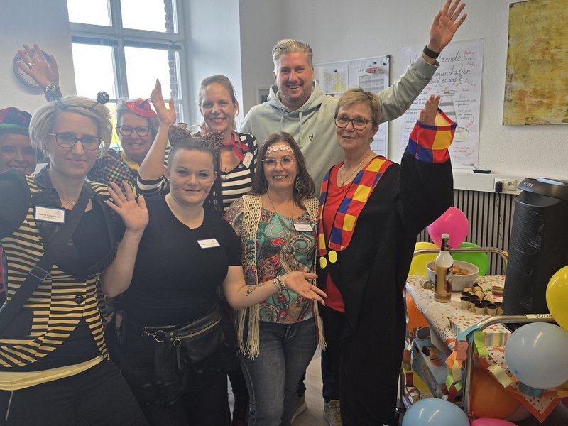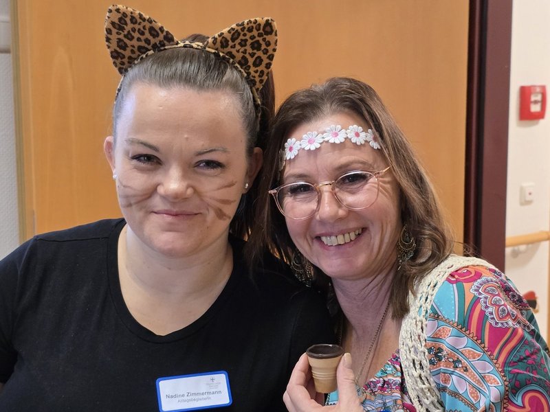 Nur zwei Tage später wurde es richtig bunt im Haus St. Raphael: Fastelovvend hielt Einzug! Getreu dem Motto „...und wenn das Trömmelchen geht dann stehen wir alle bereit…“ zog das Team des Sozialdienstes zum Karnevalsauftakt bunt kostümiert, mit schwungvoller Musik und einem köstlichen Eierlikörchen durch alle Wohnbereiche. Die fröhliche Stimmung sprang sofort über – überall wurde gelacht, geschunkelt und mitgesungen.