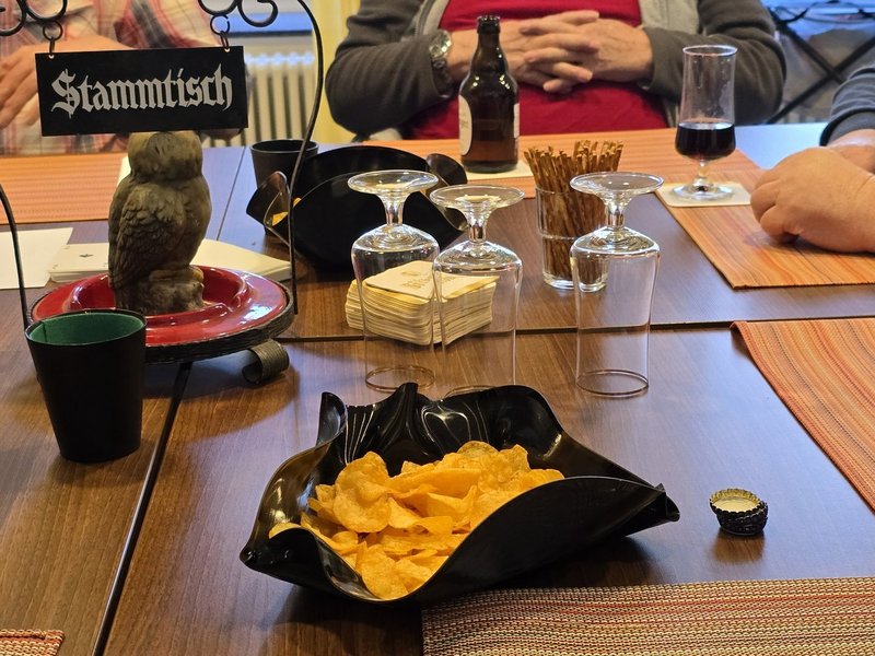 Beim jüngsten Stammtisch kam in geselliger Runde schnell gute Stimmung auf. Gemeinsam spielten wir eine Partie Mau-Mau, anschließend sorgte ein Würfelspiel für zusätzliche Unterhaltung. Dabei haben wir viel gelacht – und den ein oder anderen Bluff geschickt aufgedeckt.