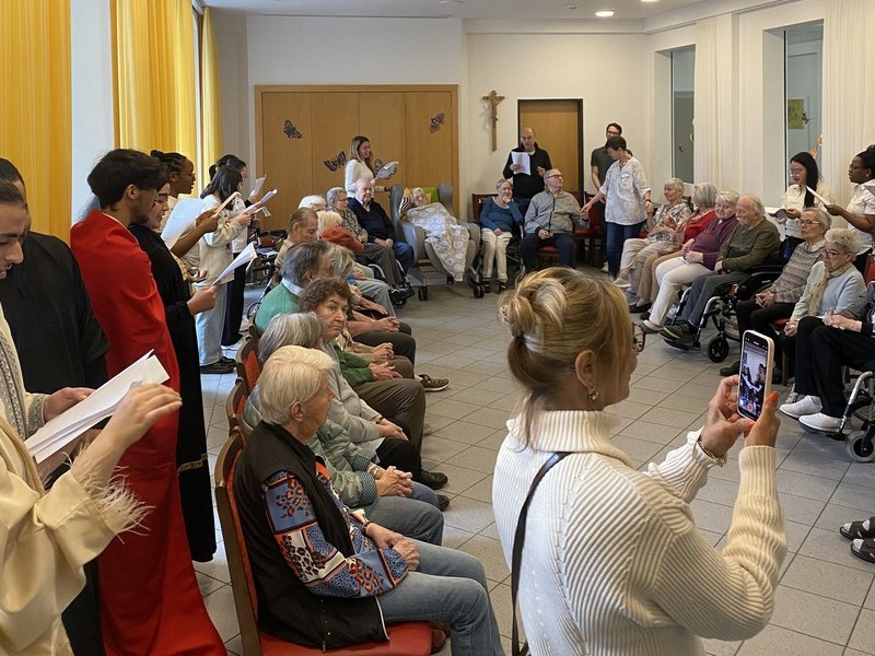 Die gesamte Schulklasse war Ende März zu Gast und hat unsere Bewohnerinnen und Bewohner mit selbstgelungen Liedern und unterschiedlichen kulturellen Interpretationen verzaubert.