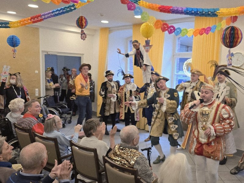 Karneval gehört zu uns wie die Marmelade in den Krapfen – und für viele unserer Bewohnerinnen und Bewohner ist er mit wertvollen Erinnerungen verbunden. Umso größer war die Freude, als wir besonderen Besuch begrüßen durften: Die Kohlscheider Karnevalsgesellschaft Scheeter Jecke sorgte mit schwungvollen Auftritten und Musik für Lachen und gute Laune. Ein ganz besonderes Highlight war der Besuch des Aachener Karnevalsprinzen Lukas I.. Mit viel Herzlichkeit, Humor und Nähe zu den Menschen nahm er sich Zeit für persönliche Gespräche, gemeinsame Lieder und zahlreiche Erinnerungsfotos.